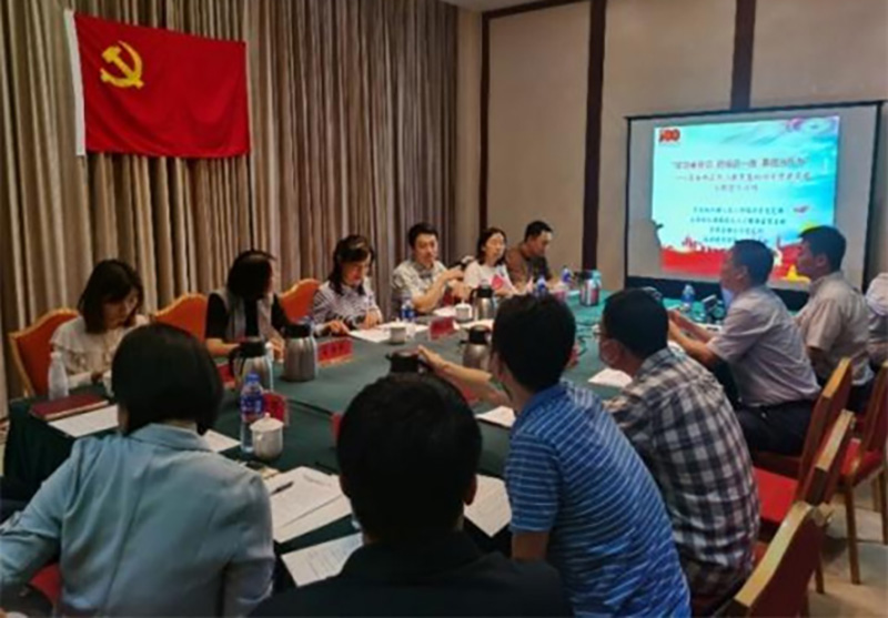 參觀后,4 個黨支部齊聚會議室,由濱海新區(qū)區(qū)委組織部高層次人才服務室黨支部書記劉建輝主持召開了座談會。宏亞公司黨支部書記岳琳領學了習近平總書記關于加強職業(yè)教育的重要指示批示精神,介紹了全國先進地區(qū)職業(yè)教育考察情況及項目進展情況。濱建投項管公司黨支部書記楊程交流了濱海新區(qū)黃港生態(tài)區(qū)職業(yè)教育產(chǎn)業(yè)園入園院校進展情況,劉建輝介紹了濱海新區(qū)職業(yè)教育基地建設展望。在交流研討中,宏亞公司咨詢?nèi)坎块L高淑玲回答了大家比較關心的入園院校數(shù)量、政府政策支撐、資金平衡方式等方面的情況。
