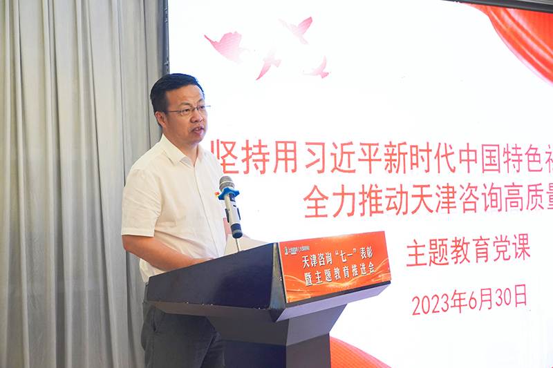 6月30日下午,天津工程咨詢有限公司黨委召開“創(chuàng)先爭(zhēng)優(yōu)強(qiáng)擔(dān)當(dāng),攻堅(jiān)突破顯作為”—天津咨詢“七一”表彰暨主題教育推進(jìn)會(huì)。集團(tuán)副總經(jīng)濟(jì)師、調(diào)研員,天津咨詢領(lǐng)導(dǎo)班子、部門經(jīng)理及本部全體黨員,各事業(yè)部、子公司領(lǐng)導(dǎo)班子、部門負(fù)責(zé)人、黨務(wù)干部及黨員、受表彰先進(jìn)代表現(xiàn)場(chǎng)參加會(huì)議。系統(tǒng)全體黨員同步線上收看大會(huì)視頻直播。公司黨委委員、副總經(jīng)理朱震主持會(huì)議。