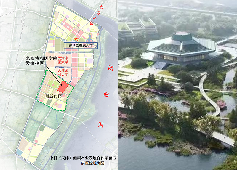 北京協(xié)和醫(yī)學(xué)院是國家衛(wèi)健委直屬、與中國醫(yī)學(xué)科學(xué)院實行院校合一管理體制的全國重點大學(xué)和國家“雙一流”建設(shè)高校。2021年5月,北京協(xié)和醫(yī)學(xué)院與天津市政府簽署合作協(xié)議,雙方圍繞科技創(chuàng)新、醫(yī)療服務(wù)、人才培養(yǎng)和成果轉(zhuǎn)化等方面展開深入合作,共建中國醫(yī)學(xué)科技創(chuàng)新體系核心基地天津基地,這是天津市落實京津冀協(xié)同發(fā)展重大國家戰(zhàn)略、承接北京非首都功能疏解的標(biāo)志性成果之一,也是提升天津市教育、醫(yī)療、科研水平的重要契機。該項目是協(xié)和醫(yī)學(xué)院天津基地四大板塊之一,項目選址在天津市靜海區(qū)團泊新城,位于中日(天津)健康產(chǎn)業(yè)發(fā)展合作示范區(qū)內(nèi),毗鄰天津醫(yī)科大學(xué)(新校區(qū))、天津中醫(yī)藥大學(xué)(三期)、現(xiàn)代中藥創(chuàng)新中心。該項目占地約700畝,規(guī)劃總建筑面積20萬平方米,將按照院校分校建設(shè)標(biāo)準(zhǔn),依托綜合性醫(yī)院,建成集本科、研究生教育于一體的教學(xué)基地。