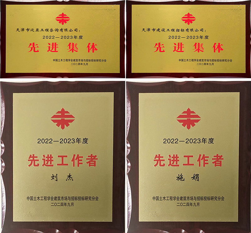 日前,在中國土木工程學(xué)會建筑市場與招標投標研究分會舉辦的2022-2023年度評選中,天津咨詢所屬泛亞咨詢、建設(shè)招標兩家子公司分別榮獲“先進集體”榮譽稱號,泛亞咨詢劉杰、建設(shè)招標施娟分別榮獲“先進工作者”榮譽稱號。