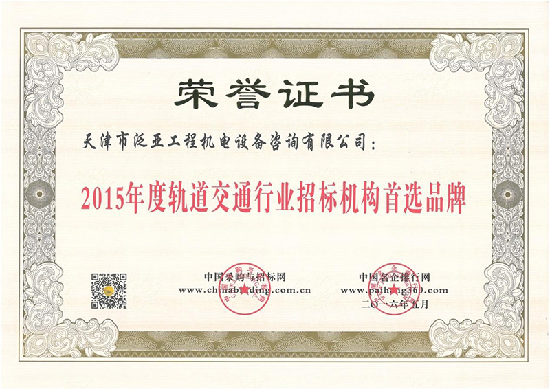 2015年度軌道交通行業(yè)招標(biāo)機(jī)構(gòu)首選品牌