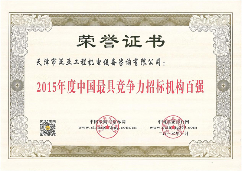 2015年度最具競爭力招標(biāo)機(jī)構(gòu)百強(qiáng)