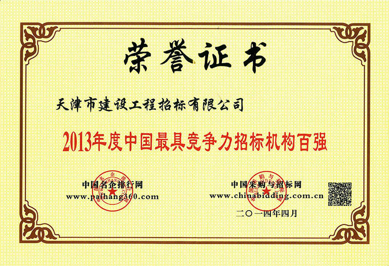 2013年度中國(guó)最具競(jìng)爭(zhēng)力招標(biāo)機(jī)構(gòu)百?gòu)?qiáng)
