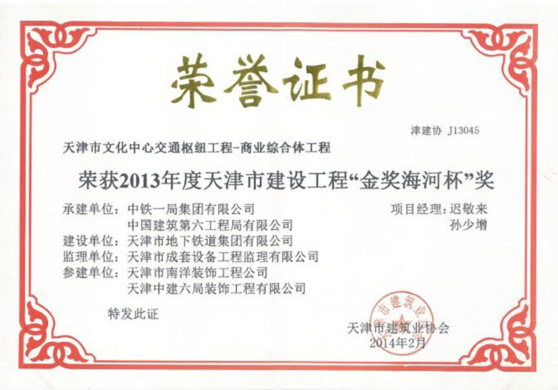 建設(shè)工程金獎(jiǎng)海河杯2(2013年)