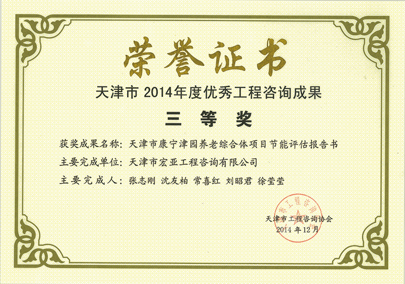 優(yōu)秀咨詢(xún)成果三等獎(jiǎng)(2014)