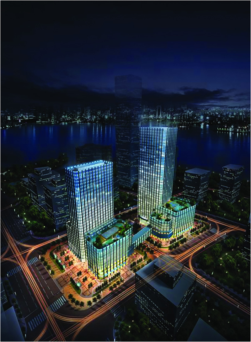坐落于天津?yàn)I海新區(qū)響鑼灣中心商務(wù)商業(yè)區(qū)。項(xiàng)目集酒店公寓、商業(yè)及辦公樓于一體,總建筑面積18.7萬(wàn)平米,由兩座分別為120米和150米的超高層塔樓及6-9層裙樓組成。其中辦公樓39層,酒店公寓樓30層。