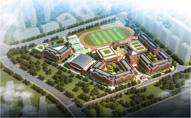工程總建筑面積8.6萬(wàn)平米,其中地上建筑包含教學(xué)樓、綜合樓、宿舍、食堂、會(huì)議中心、體育中心、看臺(tái)、國(guó)際部教學(xué)樓及食堂共計(jì)7.4萬(wàn)平米;地下車(chē)庫(kù)及設(shè)備用房建筑面積1.2萬(wàn)平米。