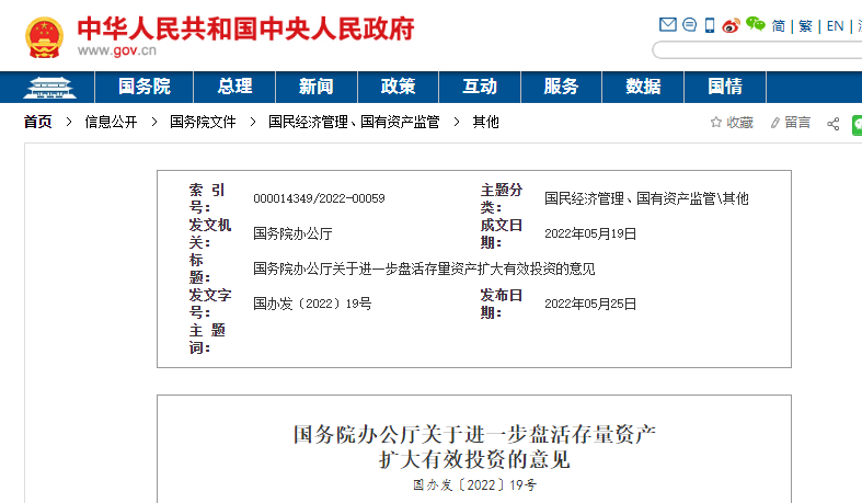 為深入貫徹習近平新時代中國特色社會主義思想,完整、準確、全面貫徹新發(fā)展理念,加快構(gòu)建新發(fā)展格局,推動高質(zhì)量發(fā)展,經(jīng)國務院同意,現(xiàn)就進一步盤活存量資產(chǎn)、擴大有效投資提出以下意見。